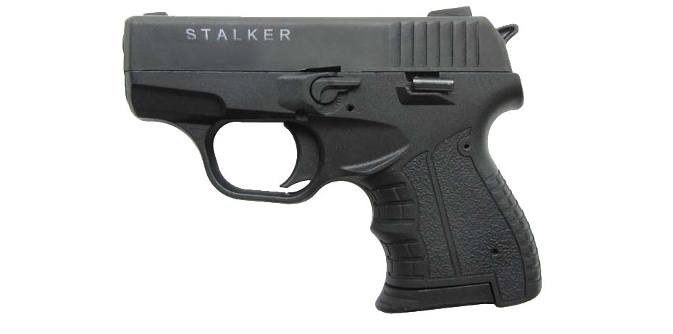 Травматический пистолет "STALKER" - газовый пистолет с возможностью стрельбы резиновой пулей. Калибр 9 мм P.A. Вес без патронов 0.45 кг. Длина 155 мм. Емкость магазина 10 патронов. Травматический пистолет «STALKER» имеет увеличенный зазор между преградами в канале ствола, в результате чего повышается скорость вылета пули. «STALKER» имеет нерегулируемые прицельные приспособления, что дает высокую кучность огня. Магазин вмещает 10 патронов. Магазин двухрядный большой емкости, поэтому и рукоятка у пистолета достаточно толстая. Во время ведения стрельбы практически нет отдачи. Травматический пистолет «STALKER» выполнен из силумина, что уменьшает вес оружия. Курок пистолета усилен стальной вставкой. По безопасности и надежности «STALKER» превосходит другие легкосплавные аналоги. Кроме этого, пистолет снабжен слабой возвратной пружиной и не требуется больших усилий для перезарядки. Оружие «STALKER» имеет весьма привлекательный вид.